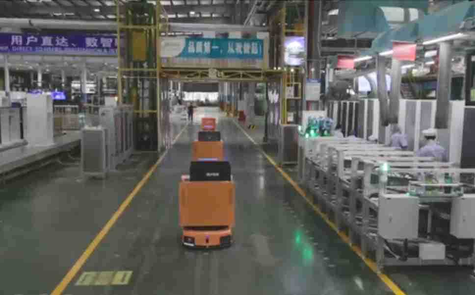 为车载冰箱物流配送打造的智能解决方案,,包含产中物流通过潜伏举升AMR搬运至线边,,产后成品物流智能仓储,,流程包含产中物流智能齐套入库,,,线边安灯叫料AMR智能配送至线边,,,,成品入库、、出库,,,,通过无人堆高车机器人,,,,智能仓储管理替代人工作业管理,,,,实现更高存储、、更高效率、、、、更具柔性化的解决方案。。。