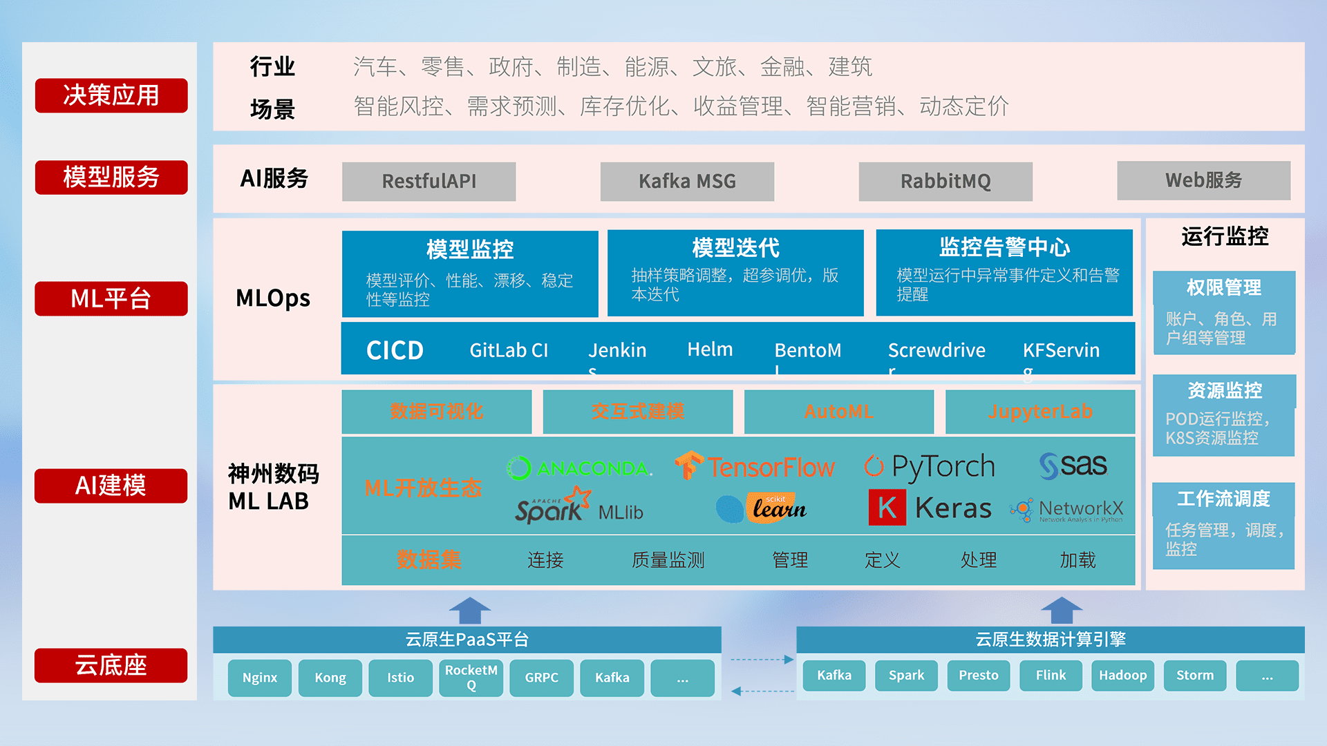 数据+模型双引擎驱动,,,面向智能服务场景,,,,快速灵活利用AI技术,,,支持业务决策,,助力企业智能化转型破局。。